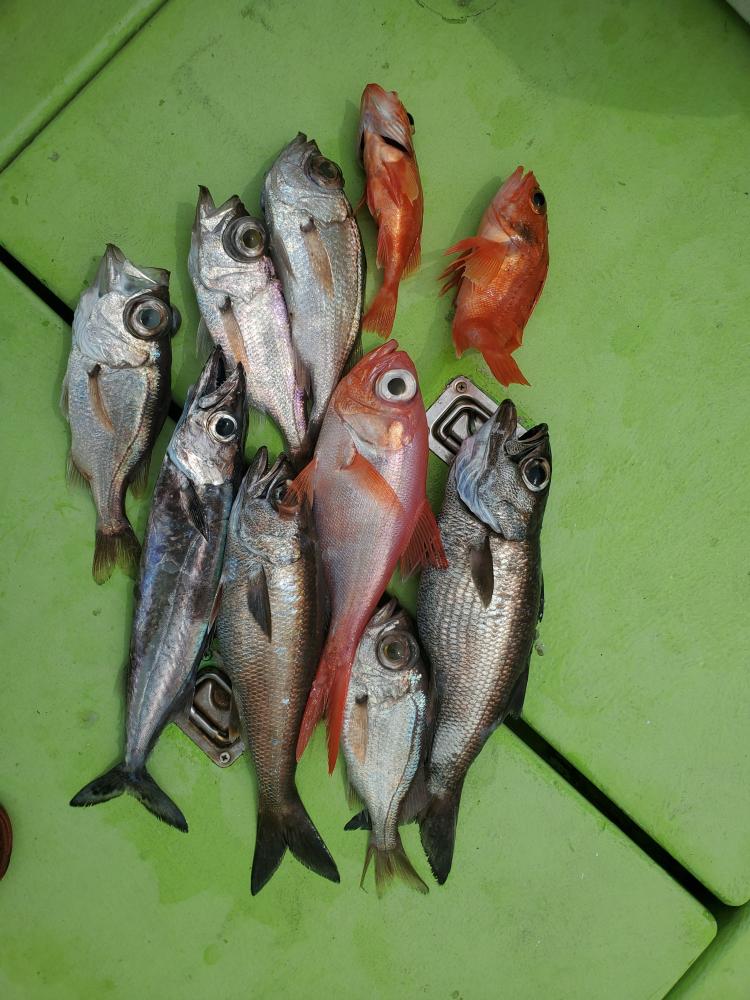 シロムツ、ユメカサゴ、サバ、メバルなど