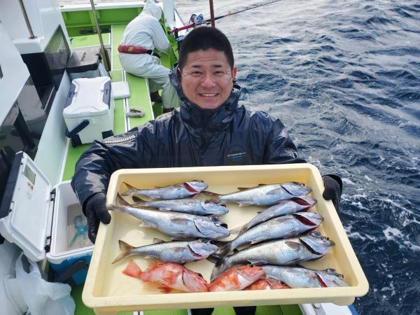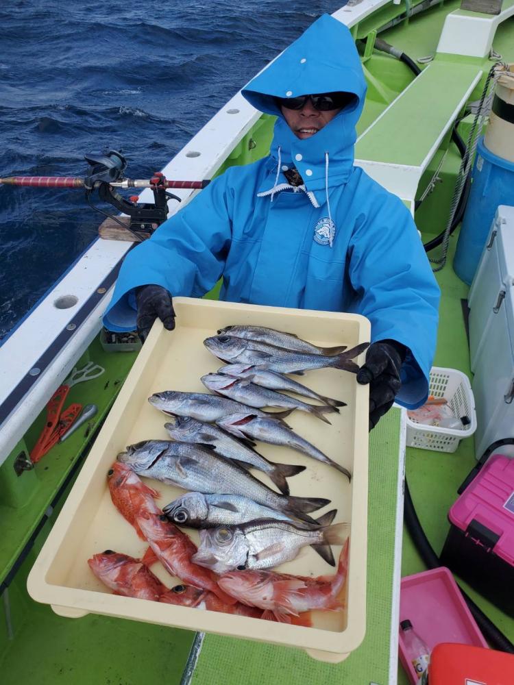 クロムツ、キンメダイ、スミヤキ、メダイ、シロムツ、 ユメカサゴ、赤ムツ、アラなどなどアタリ多く美味しいお土産十分です