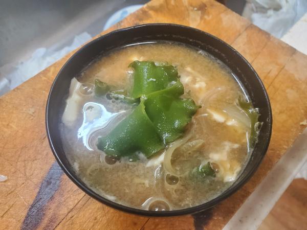 ムツのアラでダシ取って天然ワカメの味噌汁