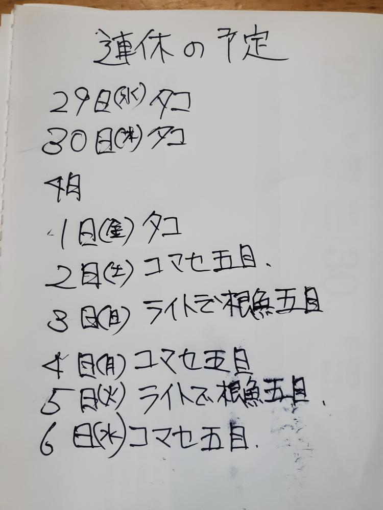 明日からのご予約ライトで根魚五目でお待ちしております。