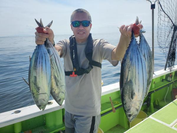 カツオ!メインに頑張ってますが、キメジ、キハダマグロ用仕掛けもご用意ください!無ければ船にもあります。