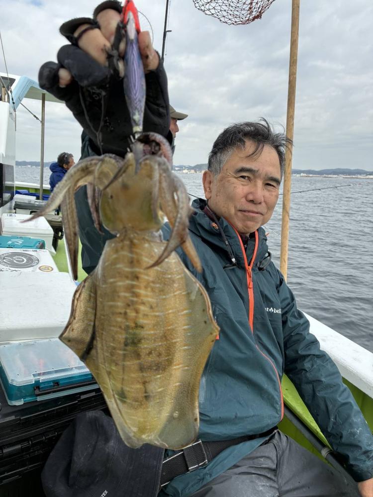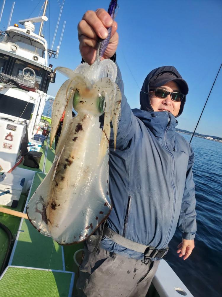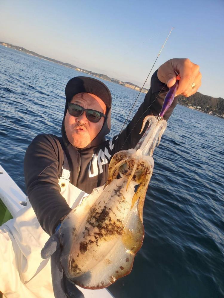 船頭もイカフライ、イカ刺身目当てに目標2杯で竿ブンブン振り回してみるかな、