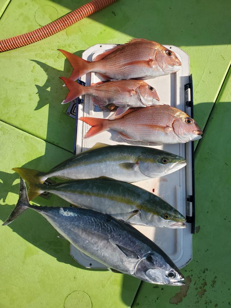 イナダお土産に真鯛などコマセで五目、